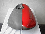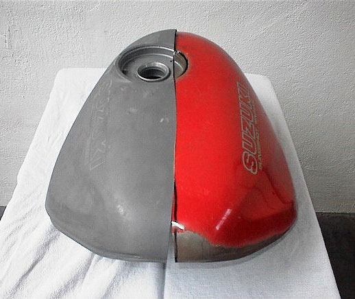 folgenden, wie die Innenreinigung/Sanierung dieses Tanks ausgeführt wird. Es handelt sich um den Tank einer Suzuki GSF 400 Bandit, der ausschließlich für diesen Demonstrationszweck in zwei Hälften zerschnitten wurde. Die Sanierung eines Tanks wird im Normalfall durch den Tankeinfüllstutzen ausgeführt. |